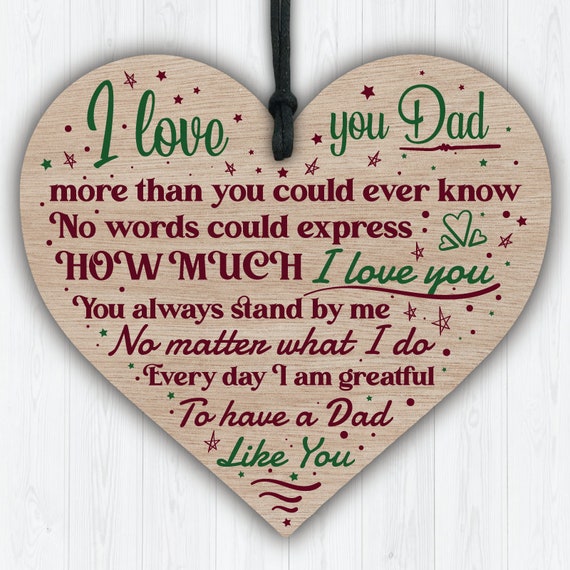 010 Love You DAD Daddy Wooden Heart Plaque Birthday Christmas Gift