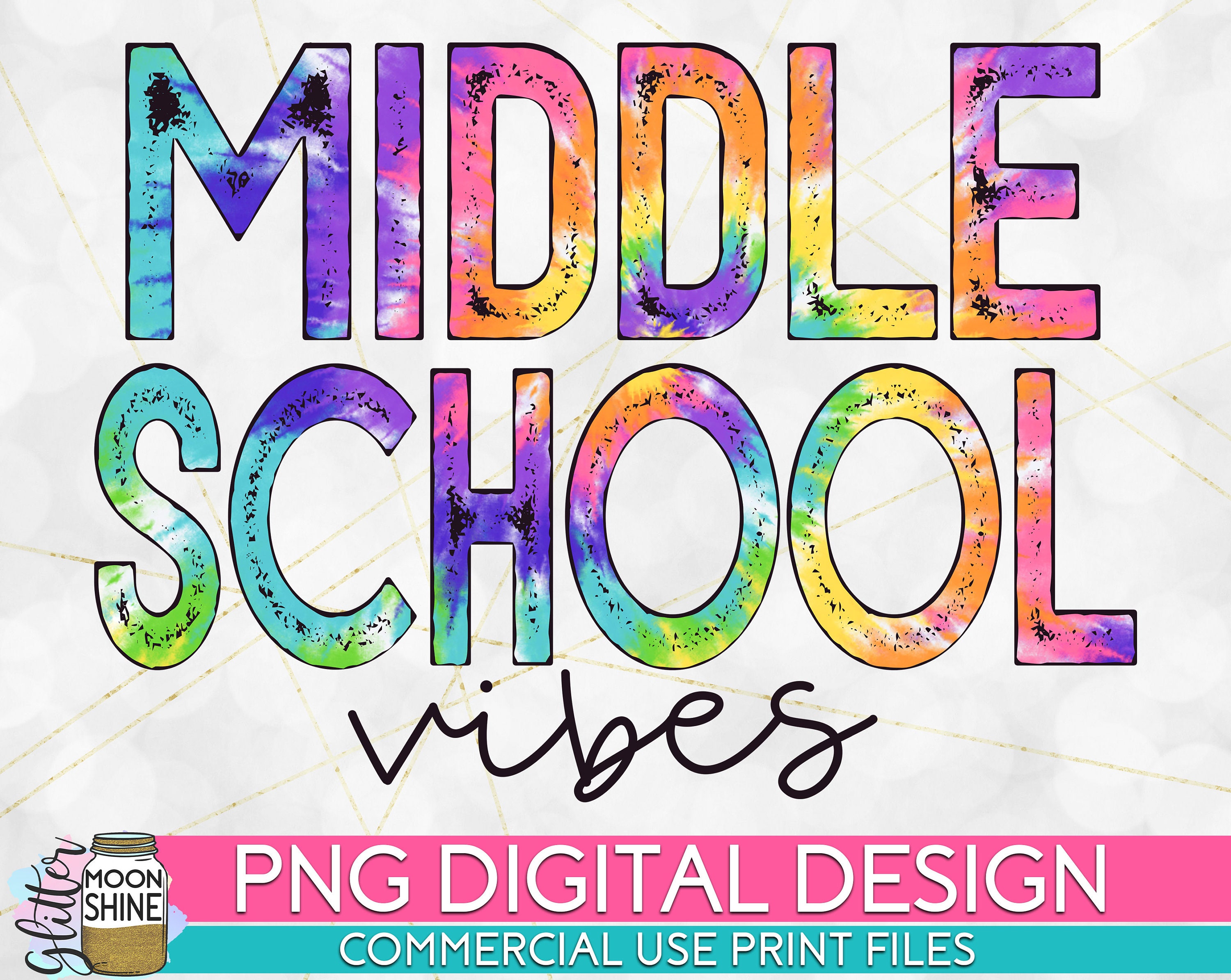 Middle School Vibes Tie Dye PNG Print File for Sublimation or