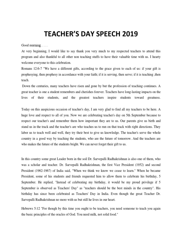 Biblical Speech On Teacher Day 2019 | PDF | Jesus | Teachers